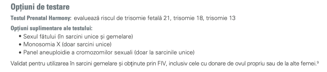 - Harmony cu Sex Fetal si Panel Aneuploidii Crom Sexuali – 1850 lei